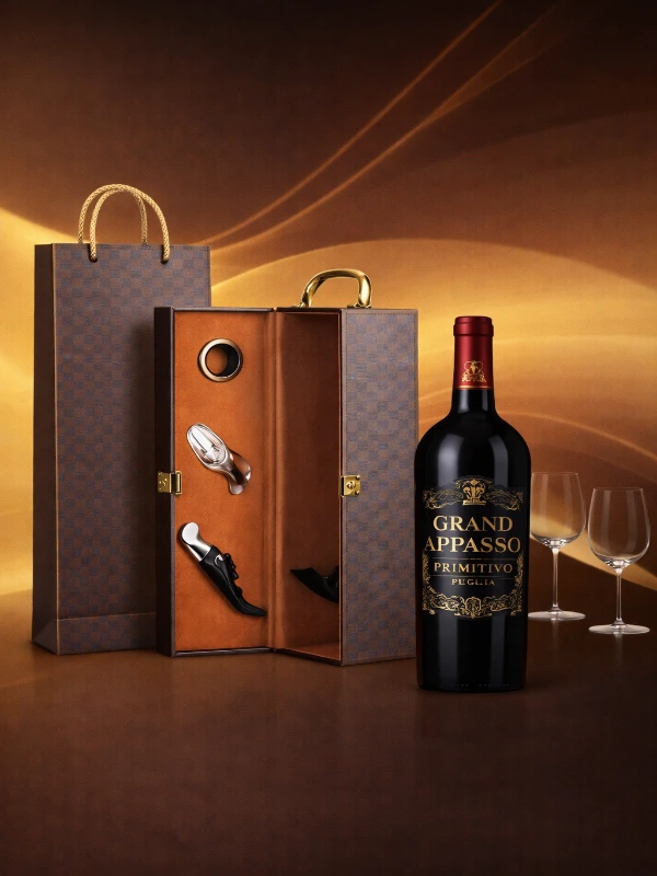 - Chai rượu vang đỏ Grand Appasso Primitivo hảo hạng, đậm đà và tinh tế