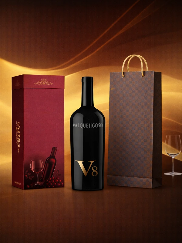 Sự kết hợp giữa rượu vang đỏ V8 Valquejigoso, hộp giấy đỏ cao cấp và túi giấy sang trọng mang đến một set quà hài hòa, dễ trao tặng và phù hợp với nhiều hoàn cảnh khác nhau, từ quà doanh nghiệp đến quà biếu lễ Tết truyền thống.